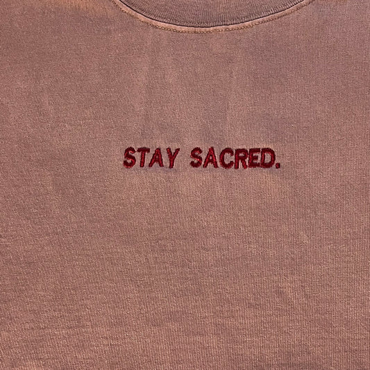 Womens Stay Sacred Embroidered Faded T-shirt - Grey